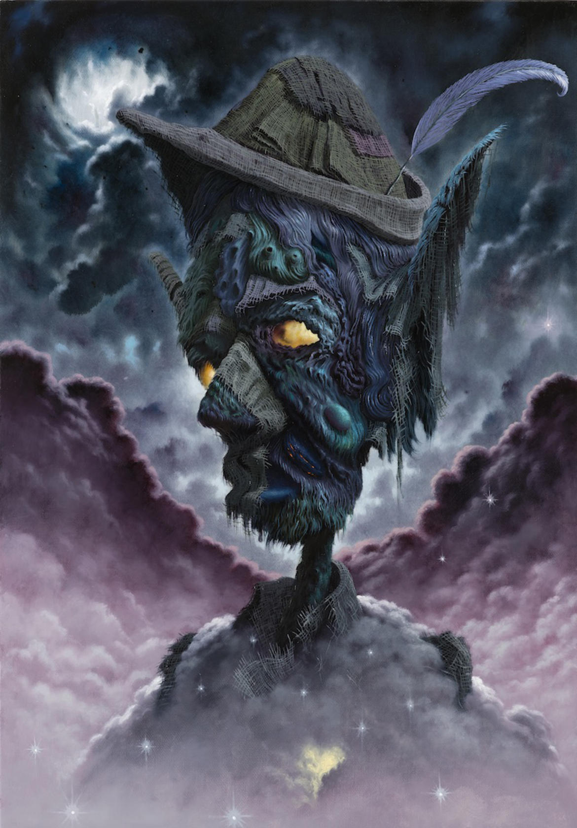 Fulvio Di Piazza ha invece ragionato sull’individuo e sul conflitto interiore, a partire da un nuovo dipinto monumentale intitolato “Autoritratto”. Seguendo le stesse suggestioni evocate dai moti interni ed esterni che si generano da questa grande figura, sospesa tra l’umano e il divino, in una dimensione ultraterrena, l’artista ha realizzato una serie di lavori a olio popolati da personaggi che vivono una guerra, “soldati dell’anima” che avanzano rassegnati verso il loro destino.