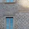Per quanto riguarda i colori della facciata, questi sono estremamente tenui e la loro tonalità varia entro la gamma del verde, del rosso e del giallo, il tutto su fondo bianco.