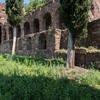 Singolari strutture diversificate tra loro e tuttora in parte esistenti, quali la facciata triangolare di una chiesa neogotica in posizione centrale rispetto all'intera scenografia, una loggia neorinascimentale, la finta rovina di un castello con porticato (fig3), un criptoportico, una torretta superiore con aperture neo-moresche e la “casa del giardiniere”, si alternavano a due vaste serre e a un giardino d’inverno, dove l’ideatore collezionava piante rare ed esotiche come palme, magnolie, aranci, limoni, nespole del Giappone, piante officinali ed aromatiche.