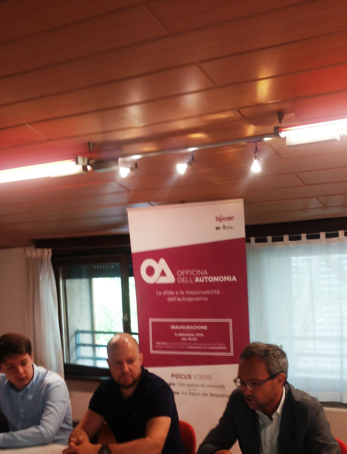 Per Barbagallo "l'’idea è di raccontare l’autonomia in modo diverso, permettendo agli attori della società civile di essere coinvolti . Riteniamo che il concetto di autonomia per quanto così conosciuto non sia sempre inquadrato in una serie di contesti che poi andrebbero esplorati partendo da alcune domande quali, ad esempio,: 'per quali aspetti l'autonomia ci contraddistingue rispetto a altri territori limitrofi?'. A questo scopo abbiamo allestito innanzitutto lo spazio fisico, una parete di 14 metri che fornisce non solo dati storici e numeri, ma anche sinteticamente la quantità di competenze della Provincia, senza pretesa di completezza e esaustività, per iniziare una discussione nella quale vorremmo coinvolgere innanzitutto i giovani. Se tutti sanno, infatti, che siamo una Provincia autonoma, non tutti sanno ciò che questo significa in concreto. Ci sarà anche lo spazio virtuale di un sito web con dati a disposizione, sia giuridici sia finanziari, che avrà lo scopo essenziale di fare da contenitore di tutte le discussioni che ospiteremo nell'Officina - conclude".