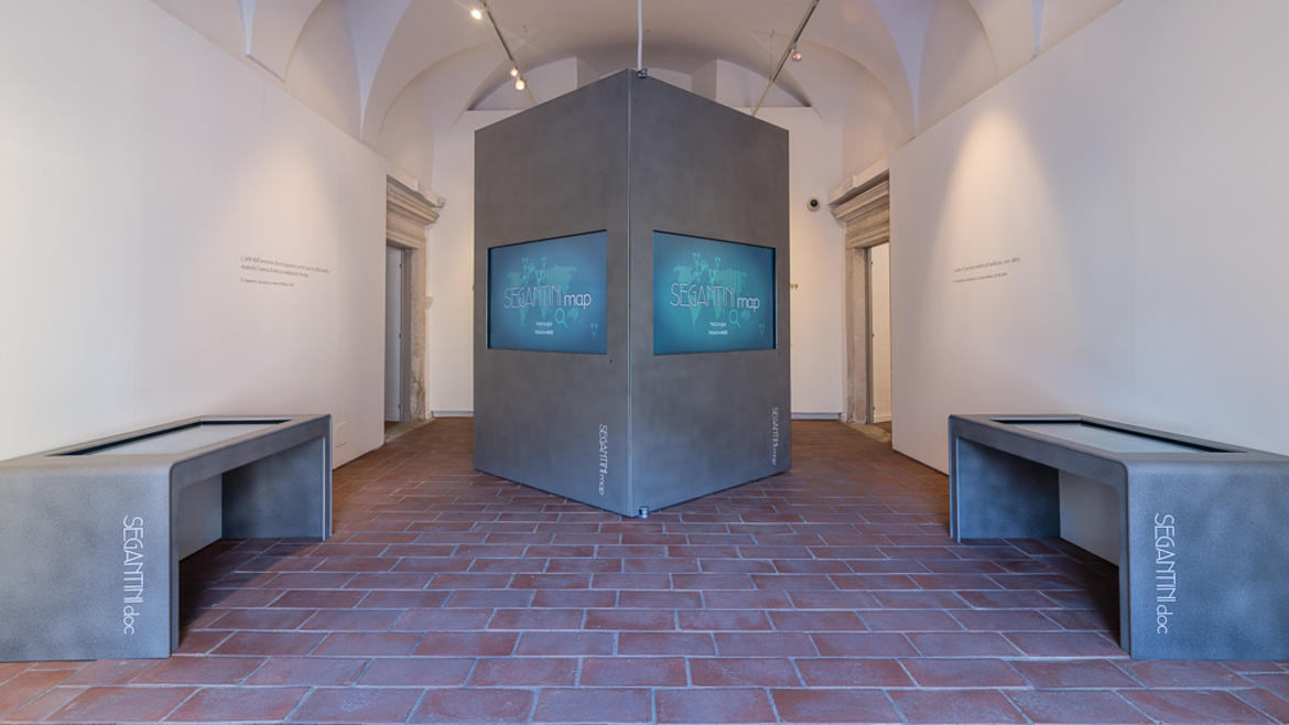 Al centro dello spazio espositivo e nel cuore del percorso, alcune postazioni ospitano una mappa interattiva con le immagini dei luoghi e delle istituzioni che nel mondo conservano opere di Giovanni Segantini (Segantini Map), mentre altri tavoli multitouch (Segantini doc) offrono al visitatore la possibilità di navigare fra vari tipi di documenti, dalle lettere autografe di Segantini, alle cartoline antiche che riproducono le sue opere o Arco alla fine dell’800, o di sfogliare le pagine decorate della preziosa monografia di Franz Servaes conservata nella biblioteca di Arco insieme ad altri volumi pregiati dedicati a Segantini.