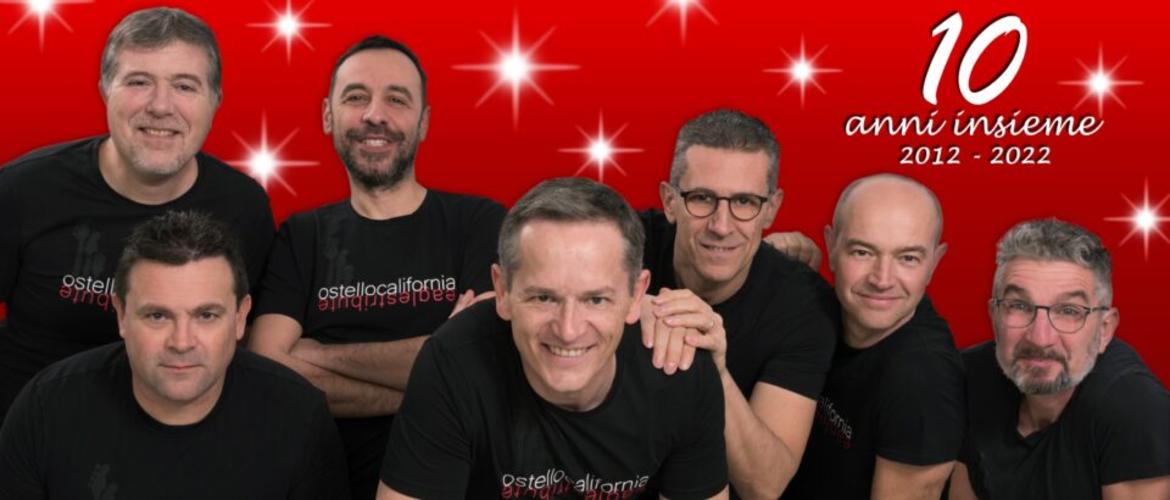 Ostello California è il nome del progetto che vede la nascita della prima “tribute-band” trentina degli EAGLES. 7 musicisti con diverse culture musicali ma accomunati dalla passione per la musica della band americana simbolo della west coast. La band nasce con l’obiettivo di riproporre non solo le canzoni, ma anche il sound originale degli EAGLES attraverso una particolare cura nell’intreccio strumentale delle chitarre e della parte corale, elementi che da sempre caratterizzano il suono degli EAGLES. Roberto, Max, Sandro, Davide, Massimo, Diego, Andrea e il supporto di una impeccabile sezione fiati composta da tre elementi, attraverso 2 ore di concerto gli Ostello California ripercorrono la storia musicale degli EAGLES proponendo grandi classici in un percorso che, dagli esordi, giunge fino ai giorni nostri con uno sguardo anche alla carriera solista dei vari componenti del gruppo.
