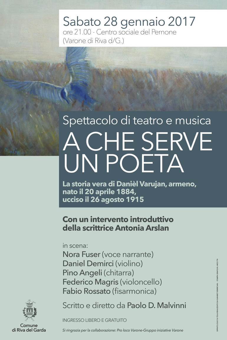 "A che serve un poeta" vede intrecciarsi le splendide poesie simboliste di Danièl Varujan con i racconti popolari arguti e fantasiosi che lo stesso Varujan si era ripromesso di raccogliere prima di essere trucidato. Si tratta di storielle brevi, argute barzellette, condite di ironia, capaci di rompere la durezza della vita con la potenza di un sorriso.