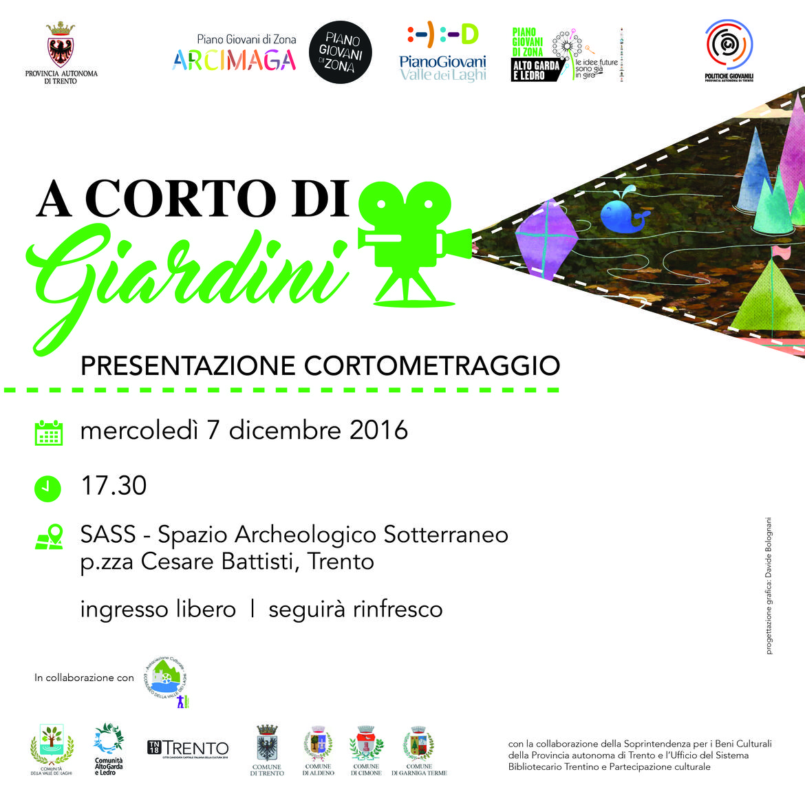 Visione di brani cinematografici, testi di autori della letteratura contemporanea e “storie disegnate” in albi illustrati con il tema del giardino come elemento narrativo centrale, sono stati i punti di partenza e di riflessione per costruire un cortometraggio che verrà presentato al pubblico a Trento, mercoledì 7 dicembre 2016, alle ore 17.30 allo Spazio Archeologico sotterraneo del Sass.