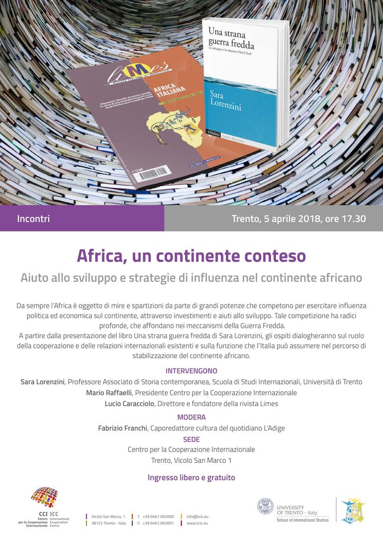 A partire dalla presentazione del libro "Una strana guerra fredda" di Sara Lorenzini, gli ospiti dialogheranno sul ruolo della cooperazione e delle relazioni internazionali esistenti e sulla funzione che l'Italia può assumere nel percorso di stabilizzazione del continente africano.