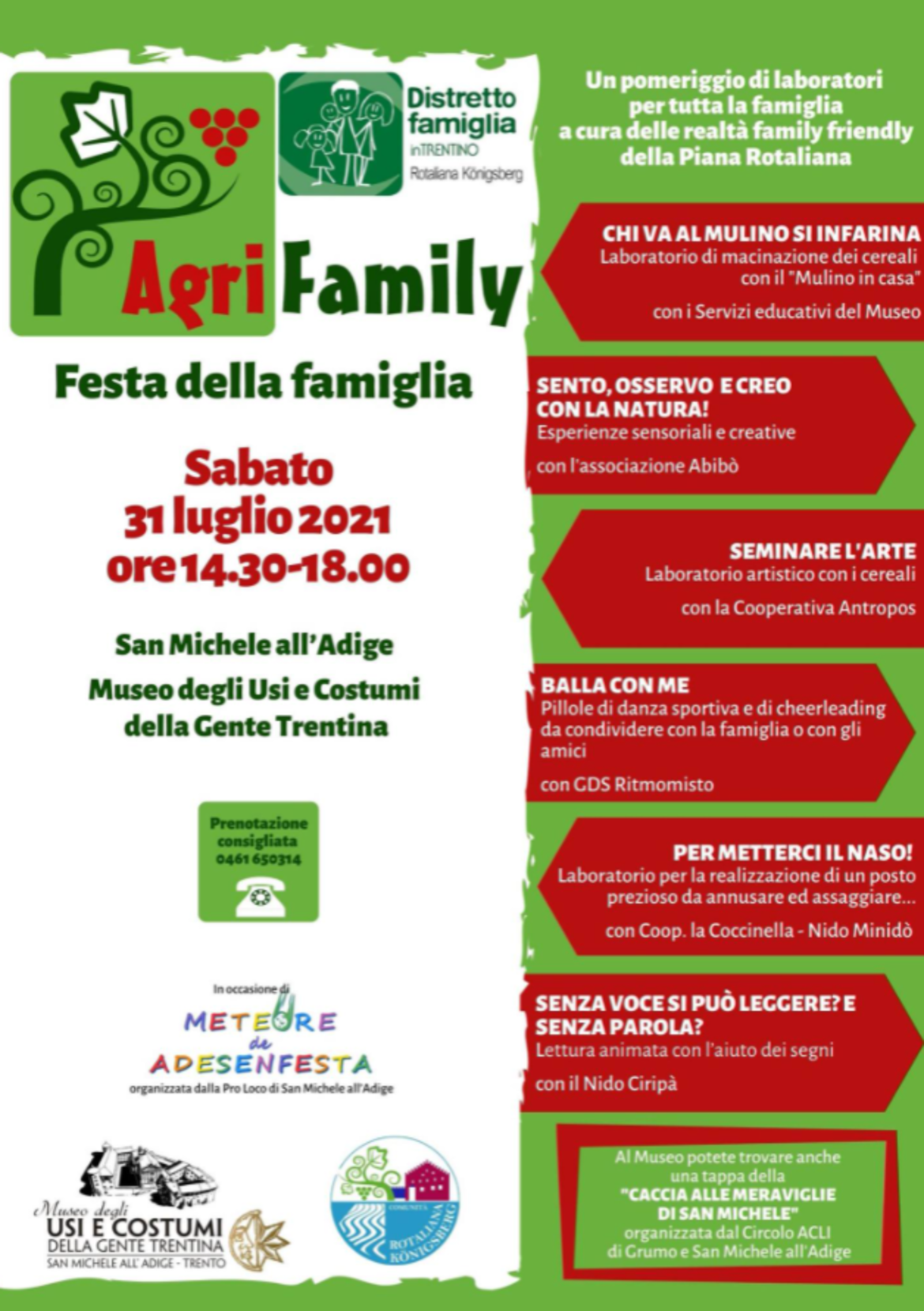 “Agrifamily” si inserisce all’interno dell’evento “Meteore di Adesenfesta” organizzato dalla Pro Loco di San Michele all’Adige, che prevede altre proposte per le famiglie all’interno del territorio comunale.