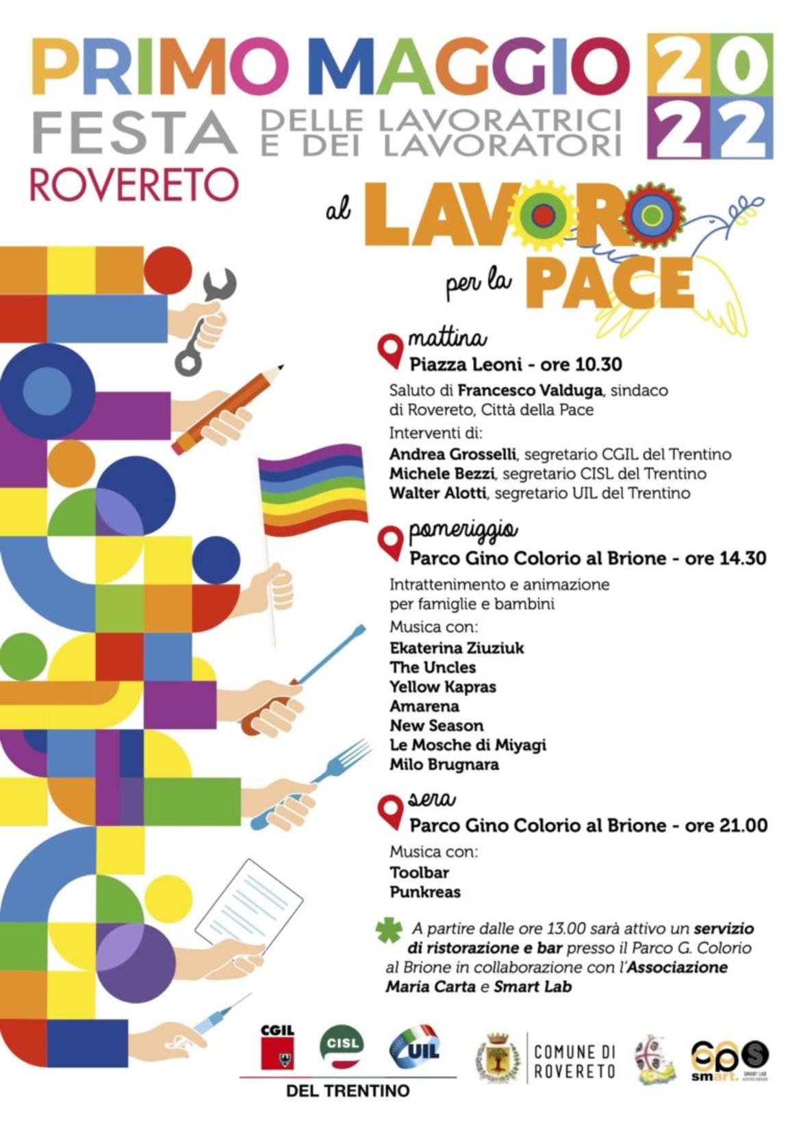 La mattina, in piazza Achille Leoni, interverranno i segretari generali delle organizzazioni sindacali, Andrea Grosselli (Cgil), Michele Bezzi (Cisl) e Walter Alotti (Uil), e il sindaco di Rovereto, Francesco Valduga.