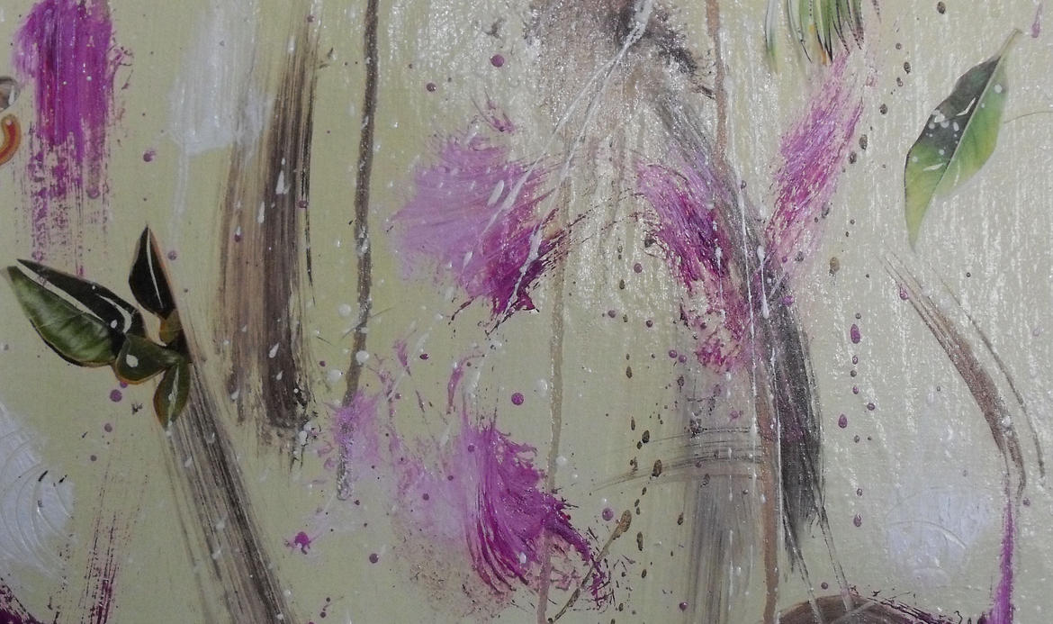 Dato effimero e capriccio attraverso pennellate astratte, veloci e non curanti e puntuale ricognizione del dato di natura attraverso l’uso puntuale del collage che colloca animali o varietà floreali di carta sulla tela, le “cineserie” sono l’estremo atto di libertà e di contaminazione di un’artista che ha collocato il dato naturale al centro della propria personale ricerca.