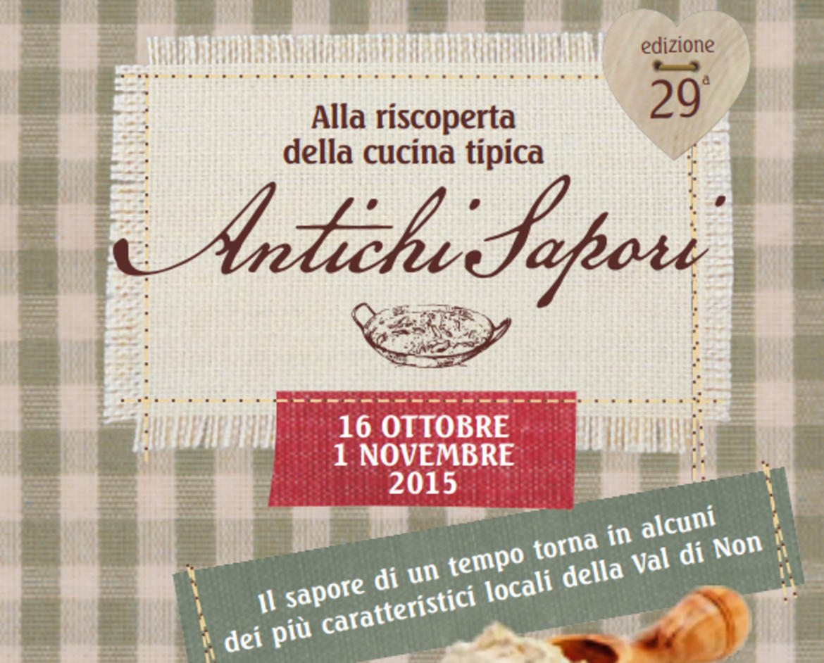 SOLO in occasione degli “Antichi Sapori della Val di Non” i nove chef ti offrono un intero menù con prodotti tipici del Trentino, dall'antipasto al dolce, con un vino ad ogni portata e degustazione di grappe locali a soli 37,00 euro.