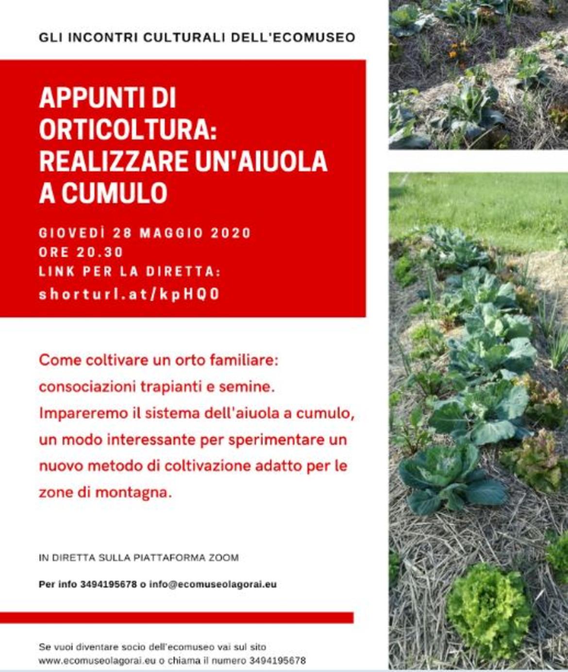 Tratteremo di consociazioni tra trapianti e semine e impareremo a realizzare il sistema dell'aiuola a cumulo: un nuovo metodo da sperimentare per le coltivazioni in zone di montagna.