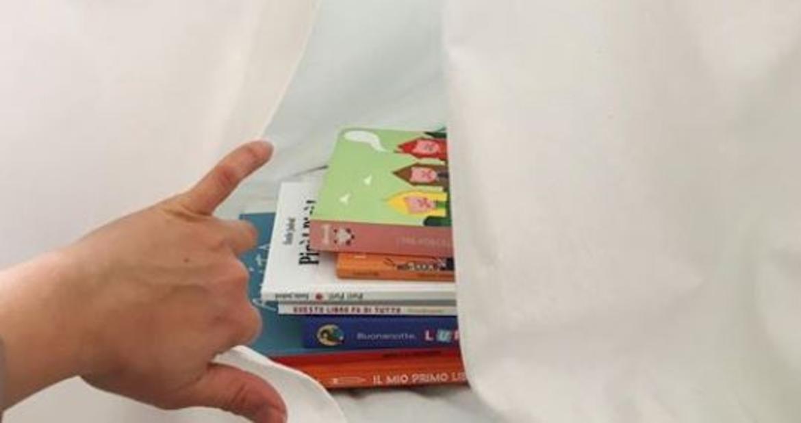 Oggi i libri che ho portato con me giocano a nascondino: eccoli lì, dietro a una tenda.