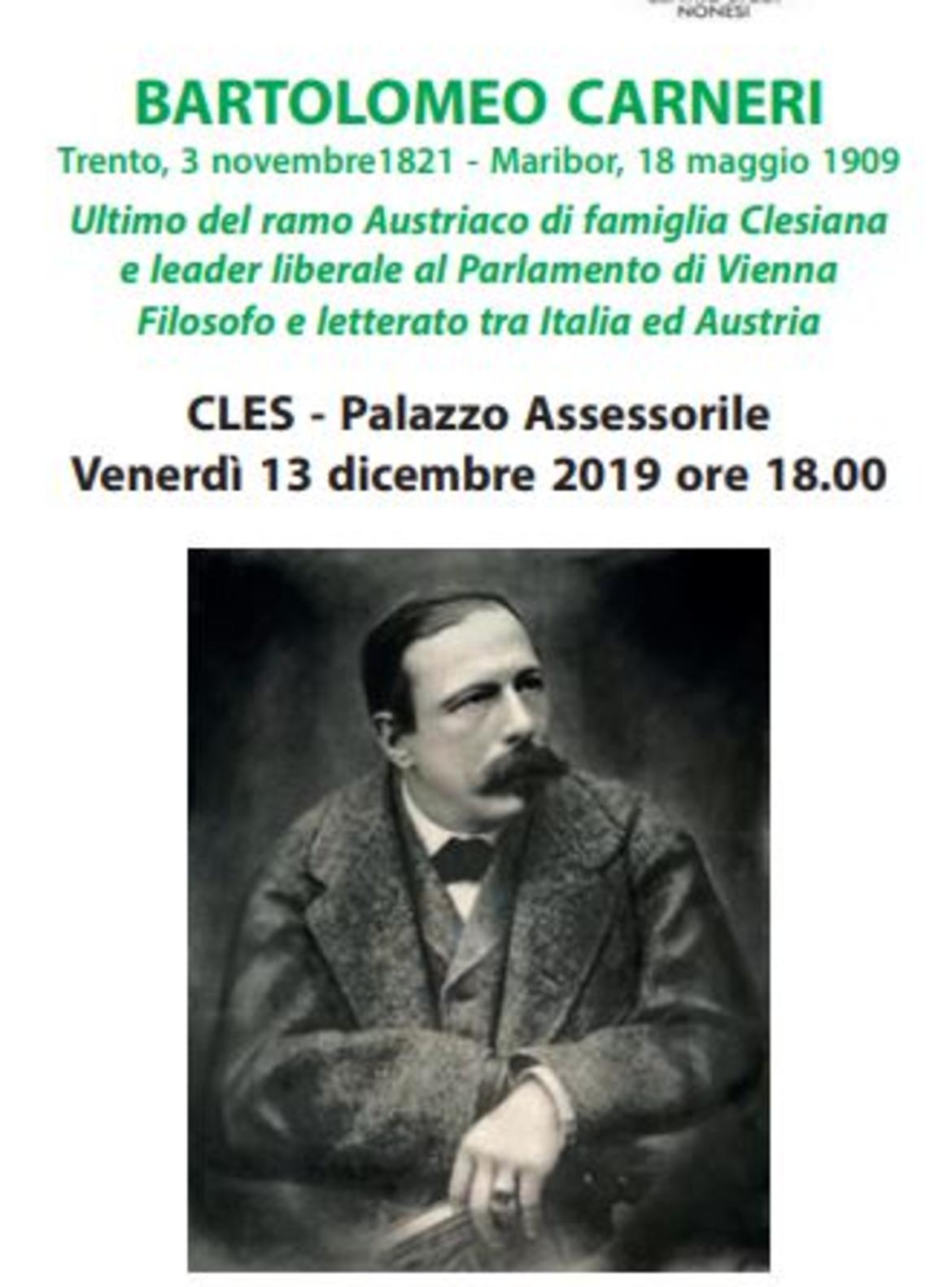 l'Associazione Italia-Austria di Trento e Rovereto ed il Comune di Cles propongono un evento pubblico per far conoscere alla comunità Bartolomeo Carneri: