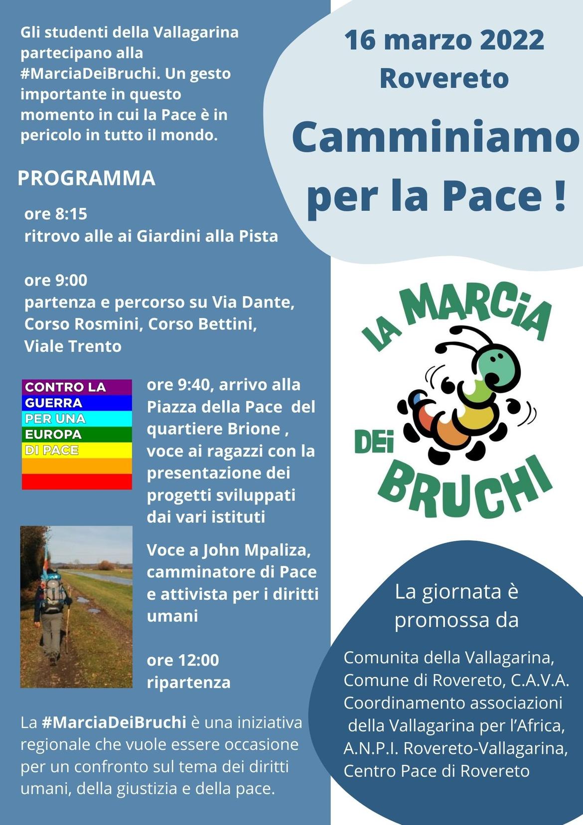In occasione dell’arrivo a Rovereto della “Marcia dei bruchi” - promossa da John Mpaliza, attivista per i diritti umani – viene organizzata la manifestazione “Camminiamo per la Pace!”.