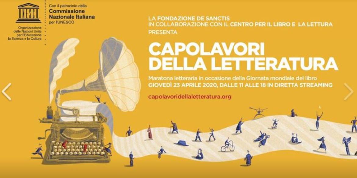 Grazie a una piattaforma creata appositamente per l’occasione e alla partecipazione di grandi autori e protagonisti della cultura italiana, la Giornata Mondiale del Libro verrà così festeggiata in tutte le case attraverso la piattaforma www.capolavoridellaletteratura.org , sul sito de la Repubblica, della Corte dei Conti, di TIM e di ACI Automobile Club d'Italia.