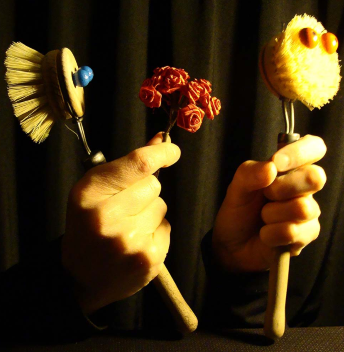 Impensabili, affascinanti burattini mostrano le loro capacità assumendo una vita propria: due pennelli si innamorano, una creatura con tre gambe cammina su una corda tesa, una figura pelosa esegue numeri magici sorprendendosi tanto quanto il pubblico, una piccola signora dagli occhi grandi cucina una tempesta, una pancia si sente propensa a dare una dimostrazione della propria forza.