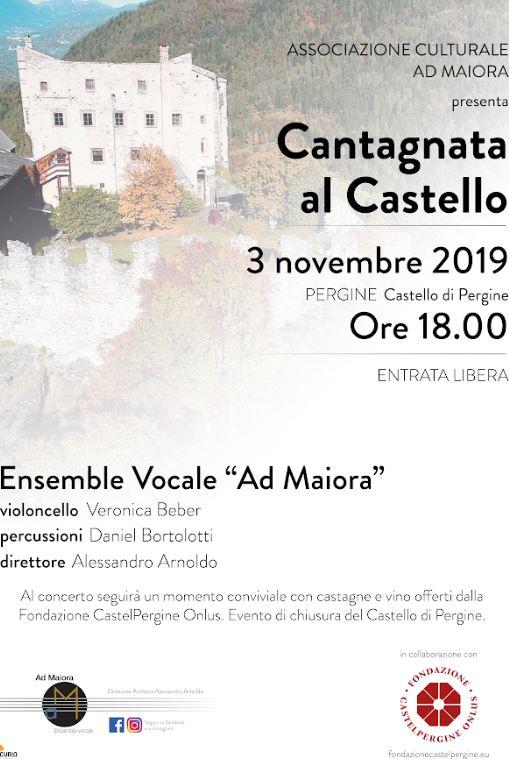 L’Associazione Culturale Ad Maiora presenta un concerto in collaborazione con la Fondazione CastelPergine Onlus. Un concerto giovane in cui l’ensemble vocale Ad Maiora si cimenterà in un nuovo repertorio per festeggiare l’arrivo dell’autunno con castagne e vino. Un Törggelen (tradizione sudtirolese) in salsa moderna e musicale.