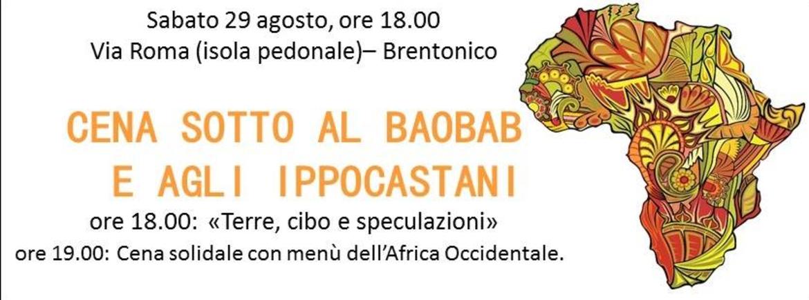 Il baobab, detto anche albero della vita, è un poderoso albero africano, mentre l'ippocastano è la pianta secolare le cui fronde danno ombra al parco di Brentonico. E' con l'idea di avvicinare simbolicamente questi due alberi che Soma, che abita a Brentonico con la sua famiglia da due anni, ha chiesto aiuto al comune di Brentonico e all'Associazione La Colonnina per condividere una cena a base dei prodotti tipici del suo paese d'origine, il Mali, con gli abitanti del luogo in cui vive.