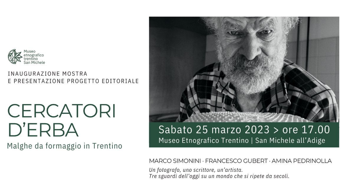 Al METS-Museo etnografico trentino San Michele, si inaugura "Cercatori d'erba. Malghe da formaggio in Trentino". Un fotografo, Marco Simonini, uno scrittore, Francesco Gubert e un'artista, Amina Pedrinolla propongono un percorso fotografico e narrativo che coinvolge quindici malghe. Quindici storie seguendo il miracolo dell'erba che si fa formaggio, episodi di un viaggio al ritmo della stagione estiva. Una mostra fotografica, testuale, pittorica. L'erba è una protagonista silente delle alte quote "non si fa sentire come fa il fragore dei campanelli alle prime luci dell'alba né come fanno le grida acute del pastore quando raccoglie le sue greggi. È semplicemente lì, da sempre, immobile motore vitale di questo vagare, nutrimento per l'animale, miracolo essenziale per l'uomo". Ed è sempre l'erba a decretare l'inizio e la fine della stagione a incalzare il pastore a salire o scendere a valle dalle terre alte.