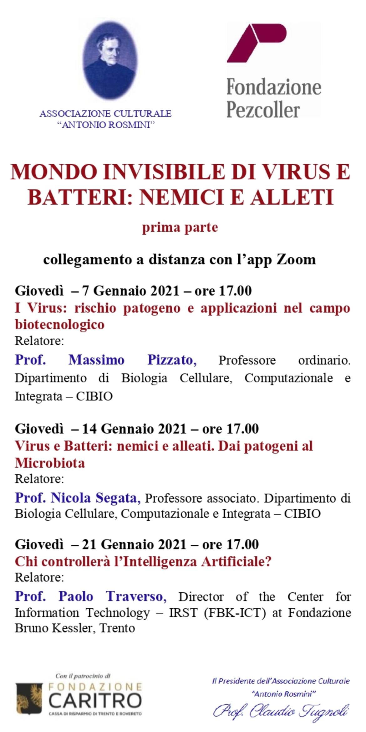 Comunichiamo che, data la situazione sanitaria sommamente incerta, le conferenze presso l’Associazione culturale “Antonio Rosmini” riprenderanno con il collegamento a distanza via Zoom.