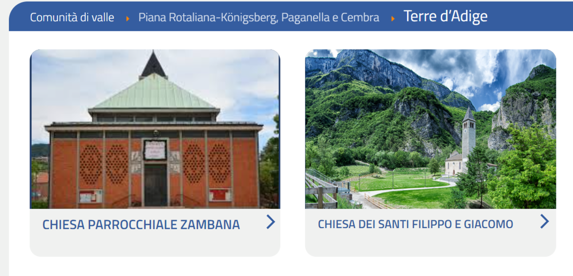 DATA E ORARIO: 01.10.2022 ore 09.30, 11.00, 14.30 (visite guidate della durata di un'ora circa)LUOGO DI RITROVO: Terre d'Adige, loc. Zambana Vecchia parco della chiesaCOSA PUOI VISITARE: Paolo Dalla Torre vi accompagnerà all'interno della chiesa per ammirare il patrimonio artistico in essa contenuto e conoscere la storia, non solo della chiesa ma anche del paese distrutto dalla frana.