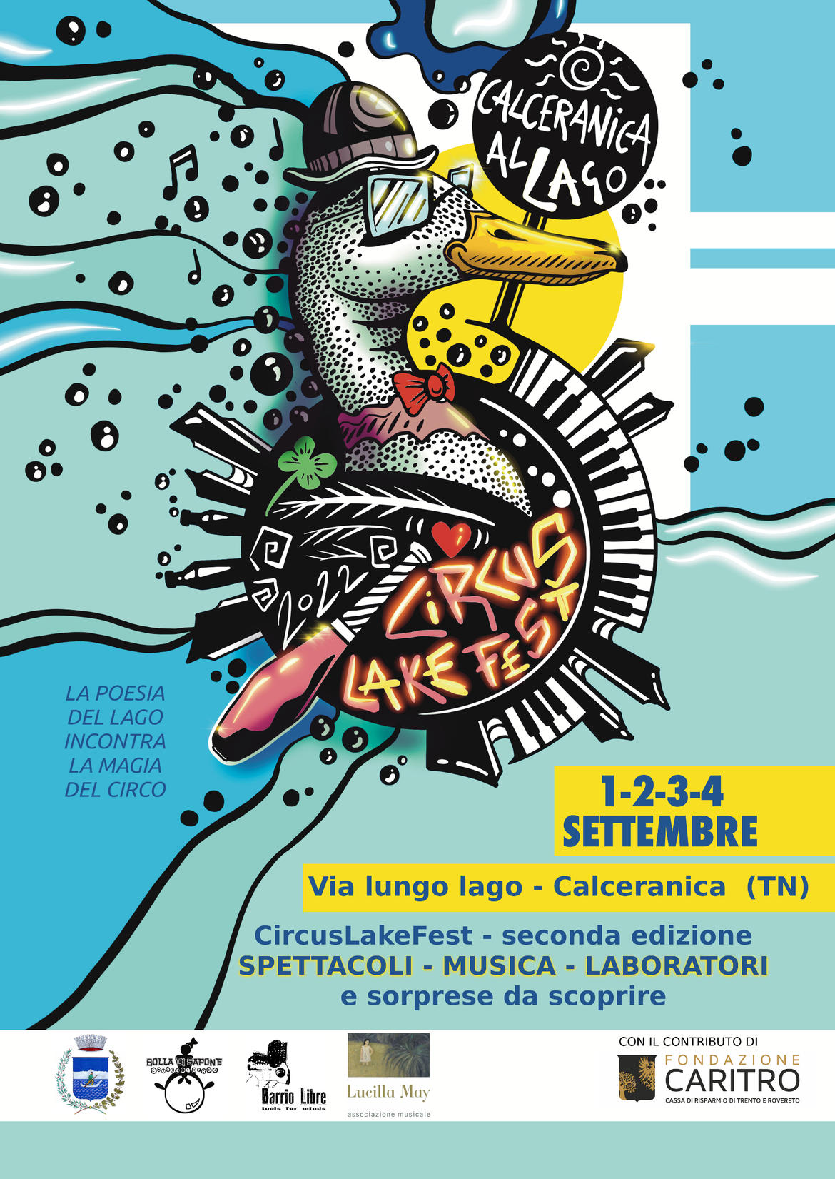 Quest’anno il festival ribadisce la sua vocazione rigenerativa e raddoppia. Da giovedì 1 a domenica 4 settembre sul lungolago di Calceranica sarà possibile assistere a spettacoli di circo e marionette, partecipare a laboratori creativi, ascoltare musica dal vivo, farsi sorprendere da spettacoli di fuoco e eventi speciali, acquistare manufatti di artigianato locale, gustare pizze appena sfornate, popcorn e zucchero filato in un bar che sarà una vera e propria installazione artistica catapultata dal circo degli anni ‘30.