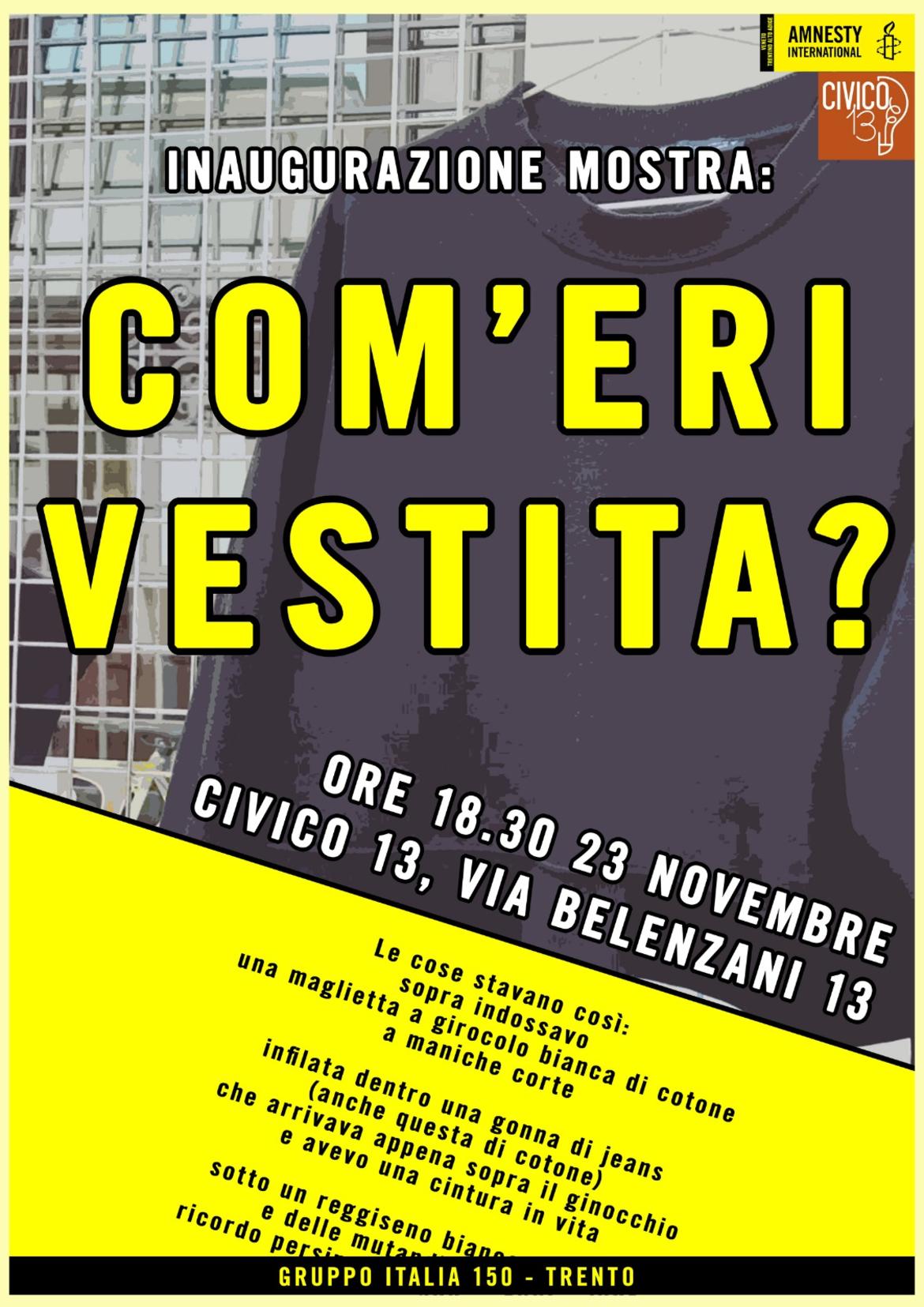La mostra è legata alla campagna di Amnesty International “#IoLoChiedo: il sesso senza consenso è stupro”, volta a chiedere un adeguamento della legislazione italiana alle norme internazionali, modificando l’articolo 609-bis del codice penale per considerare reato qualsiasi atto sessuale senza consenso.