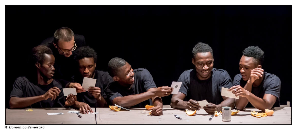 "Nell’estate del 2016, decidemmo di fare un breve laboratorio di teatro con un gruppo di richiedenti asilo ospitati nella sede di Laveno-Mombello della cooperativa sociale Agrisol. Doveva rimanere un’esperienza circoscritta, ma poi accadde che, proprio in quel periodo, Mario Bianchi ci offrì la possibilità di mettere in scena un suo testo inedito e ci venne l’idea di farlo coinvolgendo proprio quei ragazzi. Cinque di loro, provenienti da Senegal e Guinea Conakry, con nessuna esperienza teatrale alle spalle, accettarono di cominciare un laboratorio finalizzato alla messa in scena di uno spettacolo.