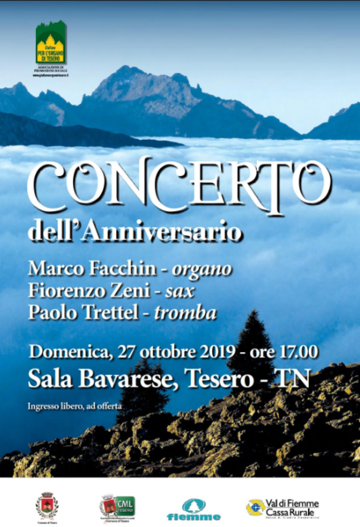 Il concerto vede la partecipazione di Marco Facchin all'organo, Fiorenzo Zeni al Sax e Paolo Trettel alla tromba.