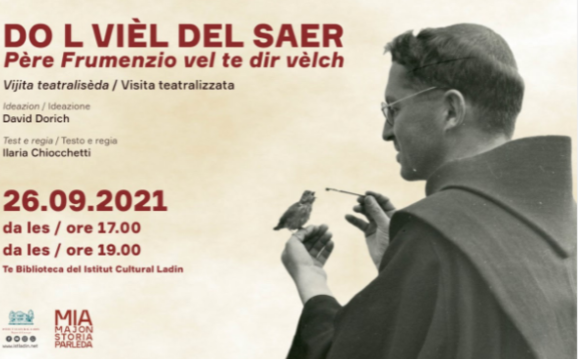 La rappresentazione teatrale DO L VIÈL DEL SAER - Père Frumenzio vel te dir vèlch verrà ripetuta più volte nell’arco della giornata alle 17.00 e alle 19.00 per consentire a tutti di partecipare, senza creare assembramenti ed è dedicata ad uno dei padri fondatori dell’Istituto Culturale Ladino, Padre Fumenzio Ghetta.