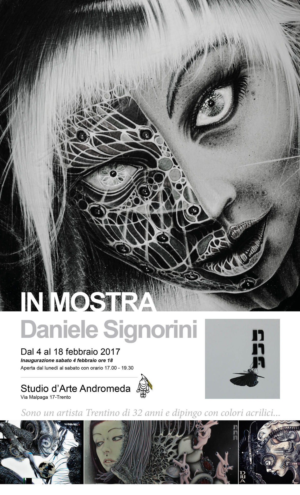 L'esposizione personale di Daniele Signorini allo Studio d'Arte Andromeda riassume l'iter intrapreso in questi ultimi dieci anni, che ancora si nutre di contaminazioni appartenenti all'area cyberpunk pur dimostrando una propria ricerca di soluzioni personali.