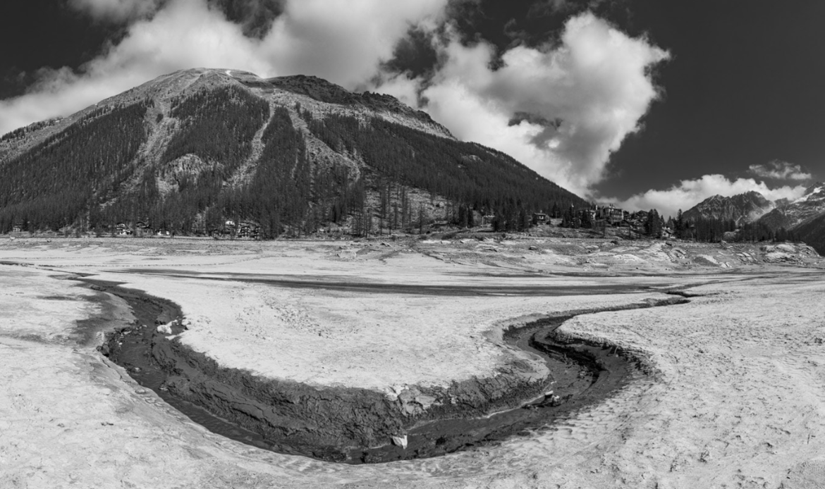 Nel corso del 2022, Stefano Torrione ha perlustrato a piedi le aree glaciologiche, fluviali e lacustri, fotografando le zone più significative. In formato 16/9 e con il linguaggio austero del bianco/nero, gli scatti evidenziano gli effetti sul territorio del riscaldamento globale e affrontano il tema della “sofferente bellezza”, come segno del paesaggio colpito dalla siccità. Il lavoro di ricerca fotografica sul paesaggio italiano di Stefano Torrione è ancora in corso e si concluderà alla fine di questo anno.