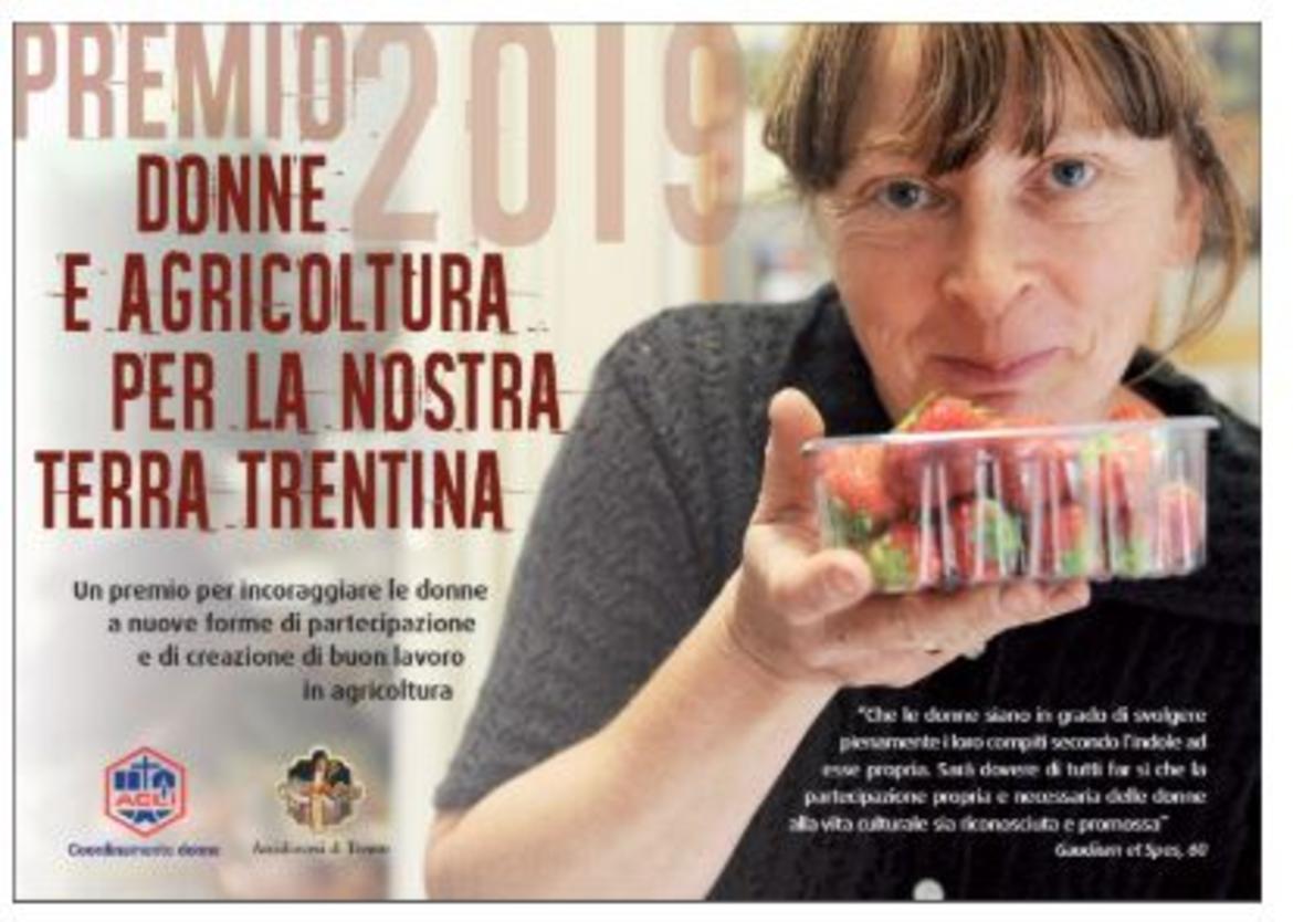 Il Premio 2019 “Donne e agricoltura per la nostra terra trentina” nasce da un ’idea del Coordinamento Donne Acli Trentine ha come finalità costitutiva quella di promuovere e valorizzare il pensiero e le esperienze della donna; di sostenere iniziative e attività per promuovere la partecipazione della donna con ruoli di responsabilità nella società civile e nel mondo del lavoro. La proposta è stata condivisa con l’Arcidiocesi di Trento che è attenta al mondo del sociale, agli immigrati e alla convivenza tra i popoli, alla sensibilità per gli ammalati, gli anziani, le problematiche legate al mondo del lavoro e della