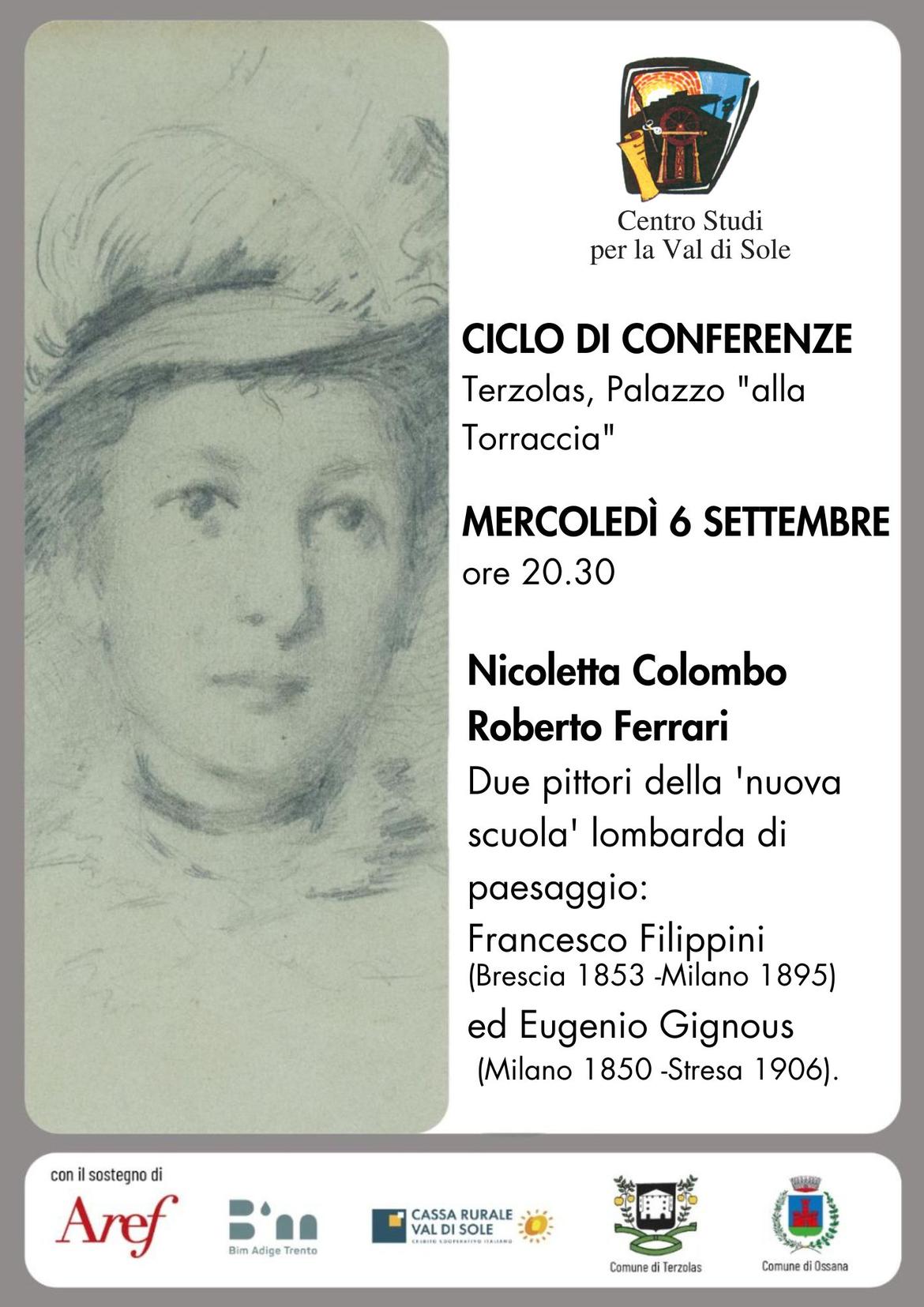 Roberto Ferrari, presidente dell'Aref (Associazione culturale e artistica intitolata ai pittori Emilio Rizzi e Giovan Battista Ferrari) di Brescia, studioso dei sistemi dell'arte e curatore di mostre antologiche e retrospettive su numerosi pittori lombardi e Nicoletta Colombo, storica dell'arte, direttrice dell'omonimo Studio d'Arte a Milano, esperta di pittura e scultura italiane del secondo Ottocento e del Novecento, oltre che di pittura informale nazionale e internazionale, presenteranno Due pittori della 'nuova scuola' lombarda di paesaggio: Francesco Filippini (Brescia, 1853 – Milano, 1895) ed Eugenio Gignous (Milano, 1850 – Stresa, 1906).