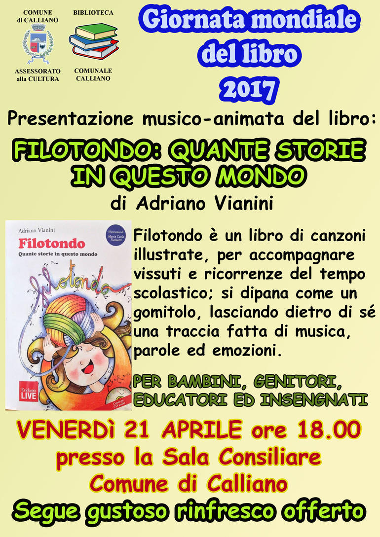 Filotondo è un libro di canzoni illustrate, per accompagnare vissuti e ricorrenze del tempo scolastico; si dipana come un gomitolo, lasciando dietro di sé una traccia fatta di musica, parole ed emozioni.