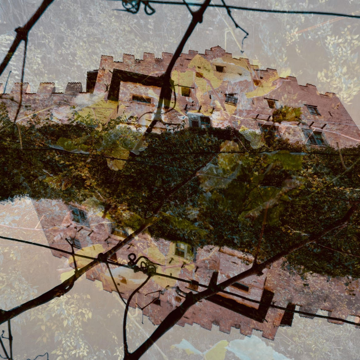 Con un linguaggio decisamente poetico, tra alberi spezzati dalla furia della tempesta e altri che riportano ad antiche suggestioni, il maestro fotografo propone una sorta di viaggio onirico, al di là del tempo e dello spazio, ritraendo paesaggi delle foreste trentine (Fiemme e Fassa, Valsugana, val di Non, Molveno, val di Cembra, di Arco). Protagonista di un emblematico scatto appositamente realizzato per l’occasione dell’esposizione al Museo di San Michele, è il Castello di Monreale: il maniero è raffigurato in una sorta di visione onirica, quasi a creare un tessuto dove trama e ordito manifestano i potenti emblemi del territorio, il bosco e i tralci di vite, simbolo della Piana Rotaliana.