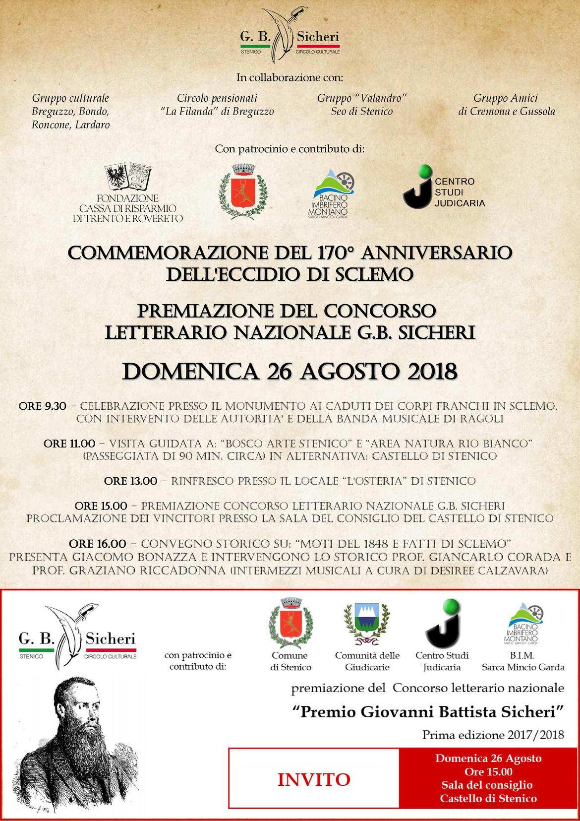 Commemorazione del 170° anniversario dell'eccidio di Sclemo e premiazione del concorso letterario nazionale G.B. Sicheri