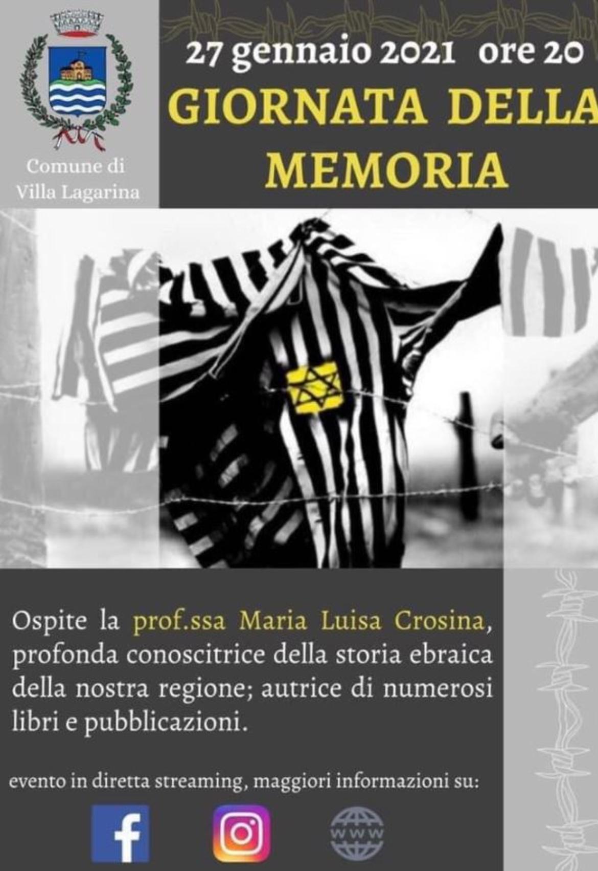 In occasione della giornata della memoria del prossimo 27 gennaio 2021 ore 20. Tutta la cittadinanza è invitata a partecipare all'evento in diretta streaming con Maria Luisa Crosina storica e profonda conoscitrice della storia ebraica della nostra regione oltre che autrice di numerosi libri e pubblicazioni