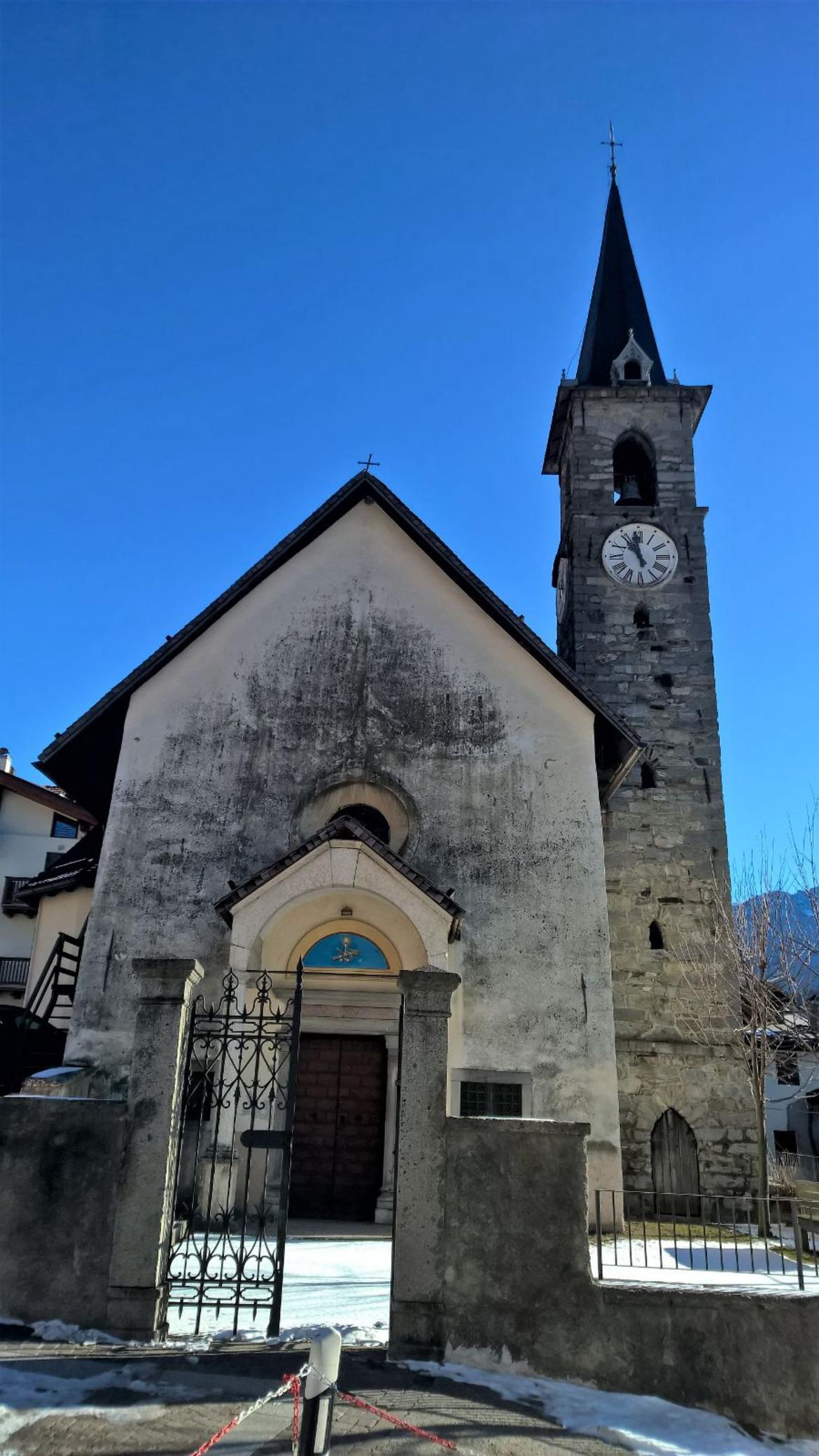 La chiesa fu eretta nel 1650 - la data è incisa sul fregio in pietra rossa del portale d'ingresso - su iniziativa di Giovanni Andrea de Rossi, canonico del Capitolo della Cattedrale di Bressanone. L'interno, formato da un'aula voltata a crociera - con le vele innestate su mensole lapidee - da un'abside pentagonale e da una cappella laterale, entrambe con volta a spicchi, è impreziosito dalle tele di Stefan Kessler (1666) e di Alcide Davide Campestrini (fine '800).