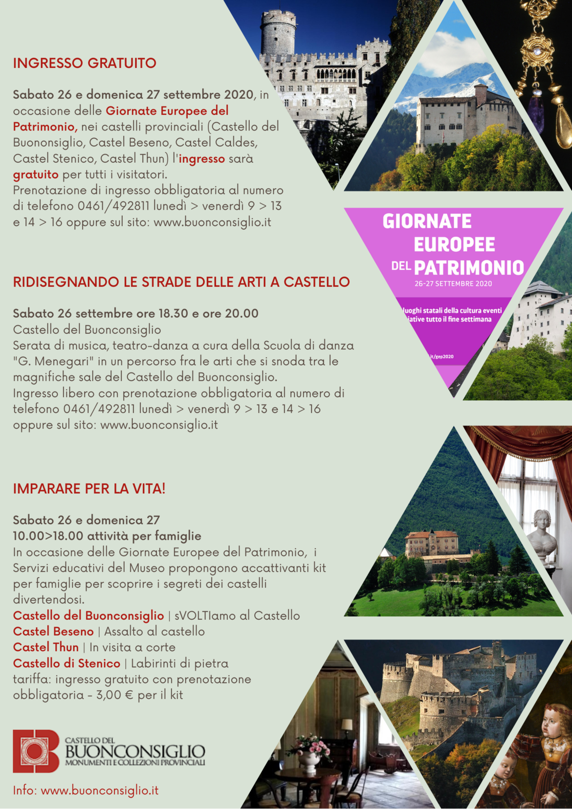 Anche quest'anno il Castello del Buonconsiglio partecipa alle Giornate Europee del Patrimonio (European Heritage Days): il più partecipato degli eventi culturali in Europa, promosso dal 1991 dal Consiglio d’Europa e dalla Commissione Europea.