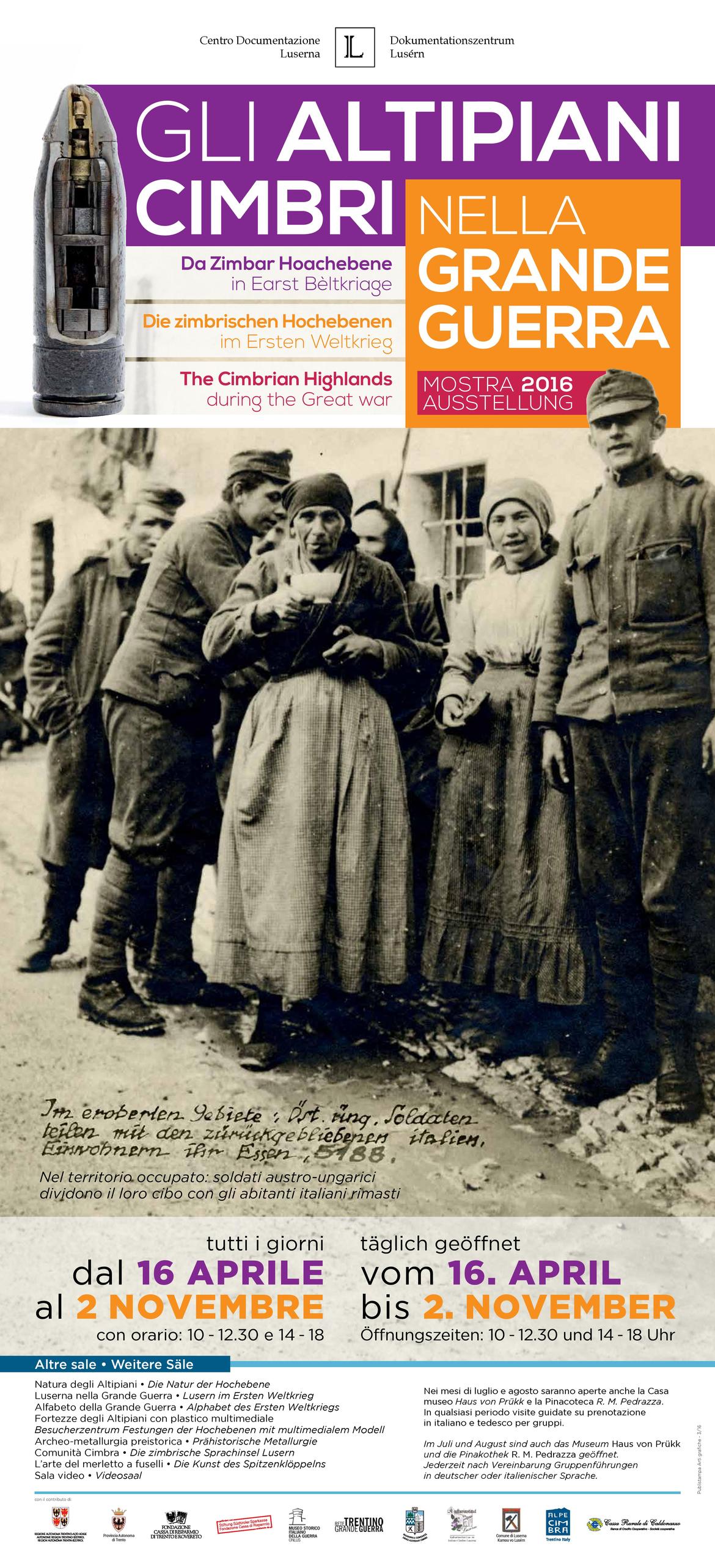 La mostra, che introduce al tema della prima guerra mondiale, con una descrizione generale circa le cause e le ragioni dello scoppio del conflitto nel 1914, l’ingresso dell’Italia nel 1915 e uno sguardo attento alla realtà locale degli Altipiani Cimbri sia sotto l’aspetto logistico/ambientale, socio/economico, culturale e politico, intende soprattutto documentare la situazione della minoranza cimbra, intesa nell'accezione più ampia del termine (cimbri austro-ungarici e cimbri italiani divisi da un confine di stato), negli anni che hanno preceduto, concomitanti e seguenti la Grande Guerra.