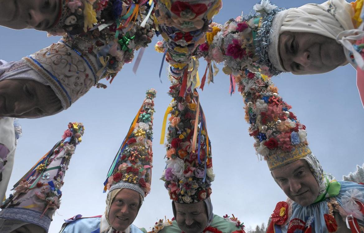 Un lungo corteo di personaggi con maschere lignee e costumi sgargianti scende di villaggio in villaggio per incontrarsi sulla piazza principale di Casatta.