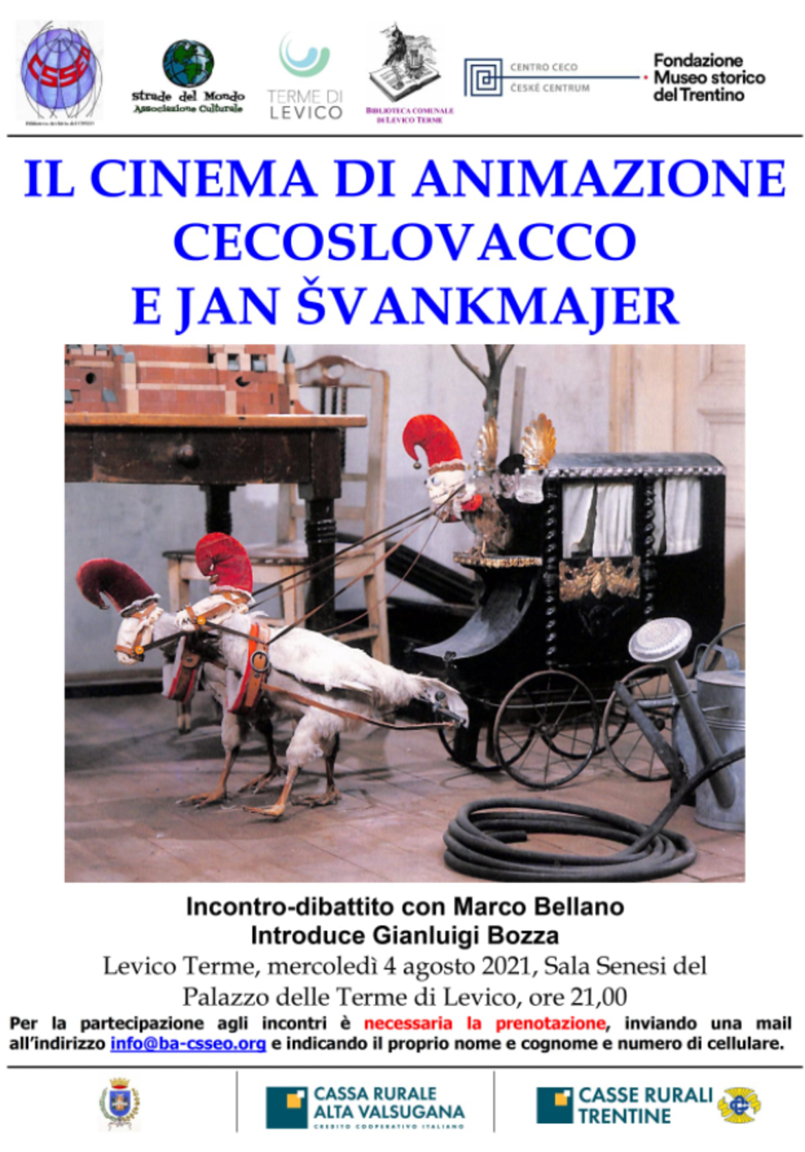 Ricostruisce e affronta queste vicende Marco Bellano nell’incontro-dibattito “Il cinema di animazione cecoslovacco e Jan Švankmajer” che si svolgerà a Levico Terme mercoledì 4 agosto 2021, alle ore 21,00 nella “Sala Senesi” del Palazzo delle Terme.