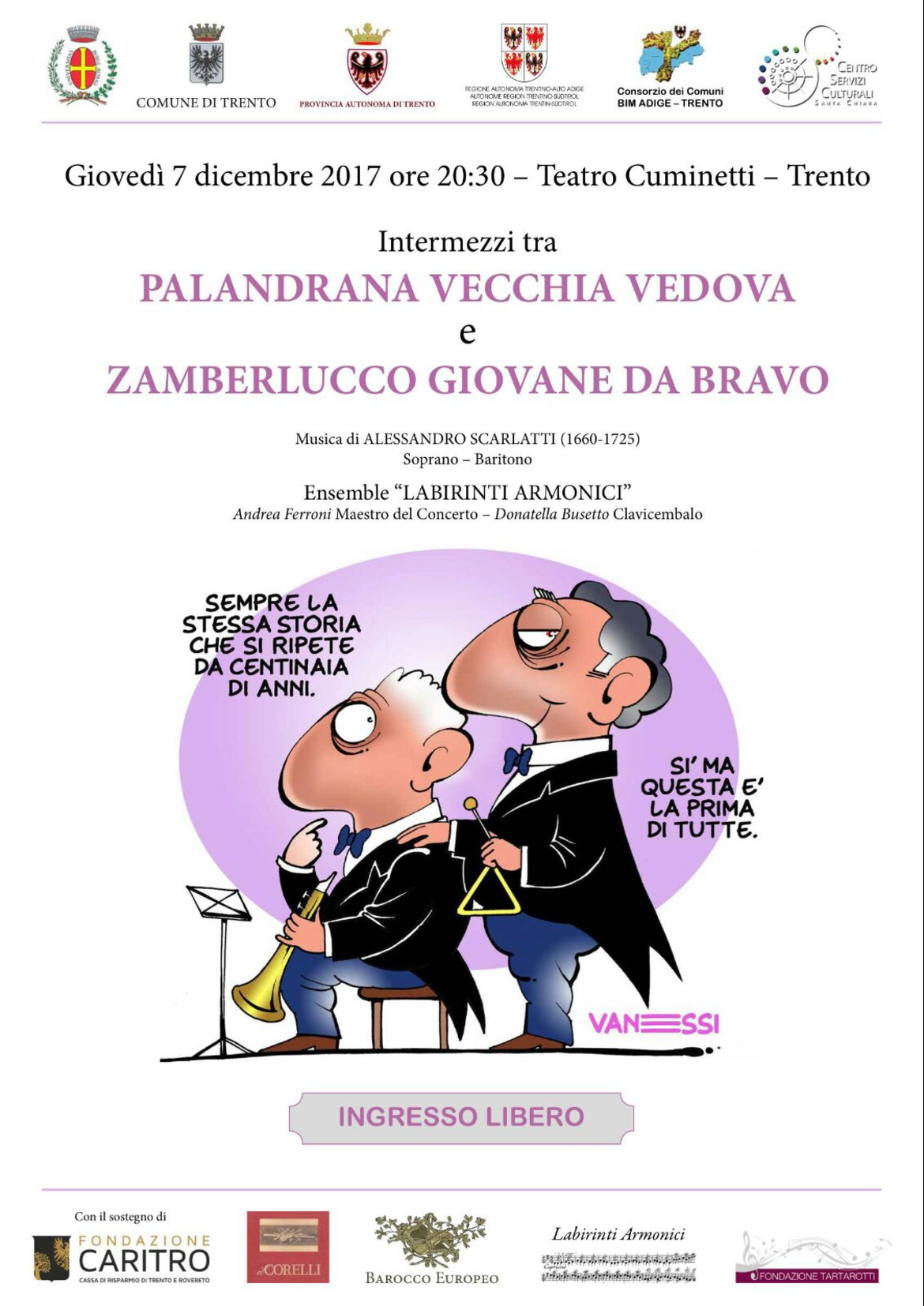 Operina barocca cantata su musica del cavaliere Alessandro Scarlatti (Palermo 1660 - Napoli 1725), compositore italiano di musica barocca, particolarmente famoso per le sue opere e considerato uno dei fondatori della scuola musicale napoletana.