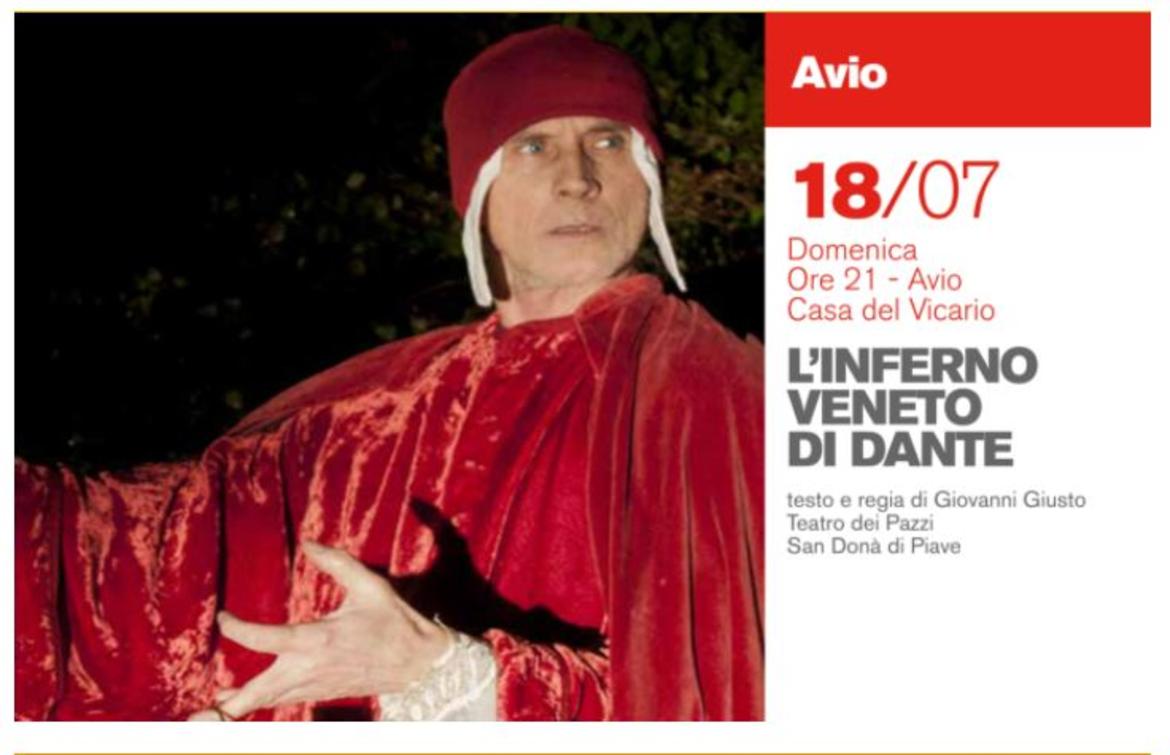 Lo spettacolo rappresenta un viaggio tra i canti e i personaggi più famosi dell’Inferno dantesco, attraverso l’alternanza tra i versi originali e la versione poetica in veneto, l’unica traduzione dialettale della Divina Commedia.