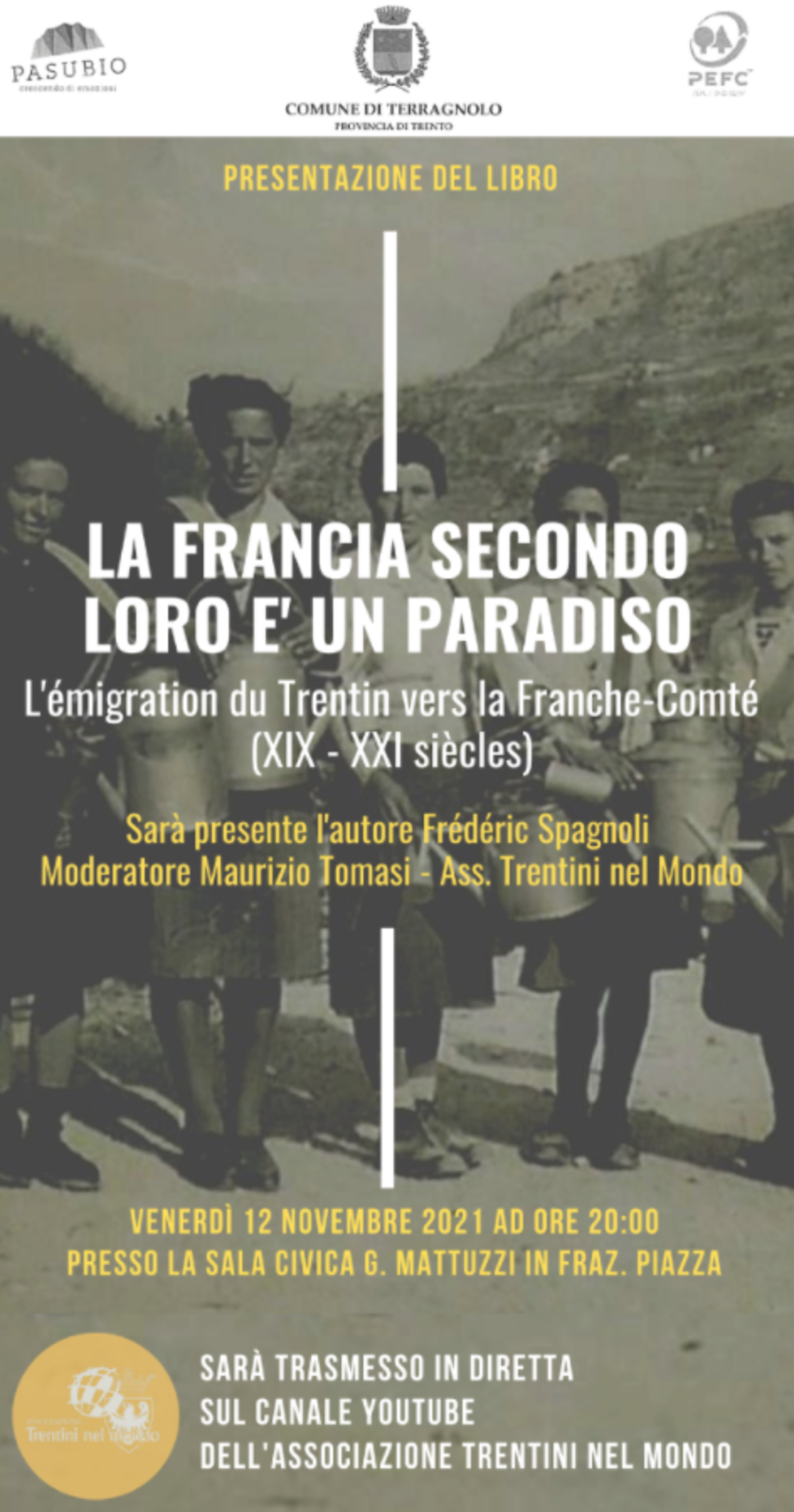 partecipazione libera presso la sala Civica nella frazione di Piazza oppure online sul Canale YouTube della Trentini nel Mondo