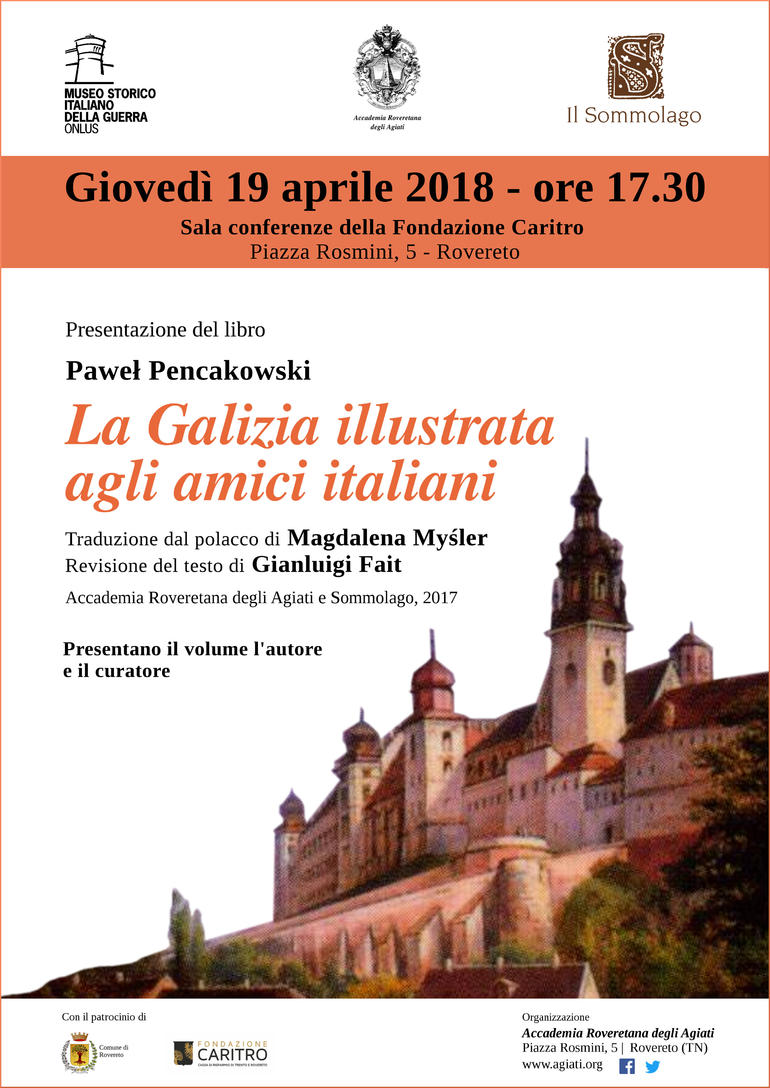 Questa complessa vicenda storica è poco nota e poco studiata, nel nostro paese. Per i trentini e per i giuliani, in particolare, la Galizia è il remoto teatro di guerra dove furono inviati a combattere contro i russi tante migliaia di soldati delle nostre regioni di confine e dove tanti di loro furono feriti, uccisi, fatti prigionieri. L’incontro con l’autore di questo libro è avvenuto nel corso delle ricerche promosse dalle istituzioni storiche trentine (e in particolare dal Museo della Guerra di Rovereto) su quella vicenda, nel contesto più vasto della Grande guerra sul fronte orientale. E da lì è partito l’impulso a una ricostruzione complessiva della storia galiziana, generosamente raccolto da Paweł Pencakowski, storico dell’arte e docente a Cracovia. È un vero e proprio dono “agli amici italiani”, il suo, che ha richiesto molti anni di elaborazione e scrittura. Lungo e appassionato è stato, di pari passo, il lavoro del curatore Gianluigi Fait, e con lui della traduttrice Magdalena Myśler. L’Accademia Roveretana degli Agiati e il Sommolago, in stretta collaborazione con il Museo Storico italiano della Guerra e la Fondazione del Museo Storico del Trentino, presentano ora con orgoglio questo contributo alla conoscenza della storia europea, che nasce anche come segno di incontro e di amicizia fra i popoli.