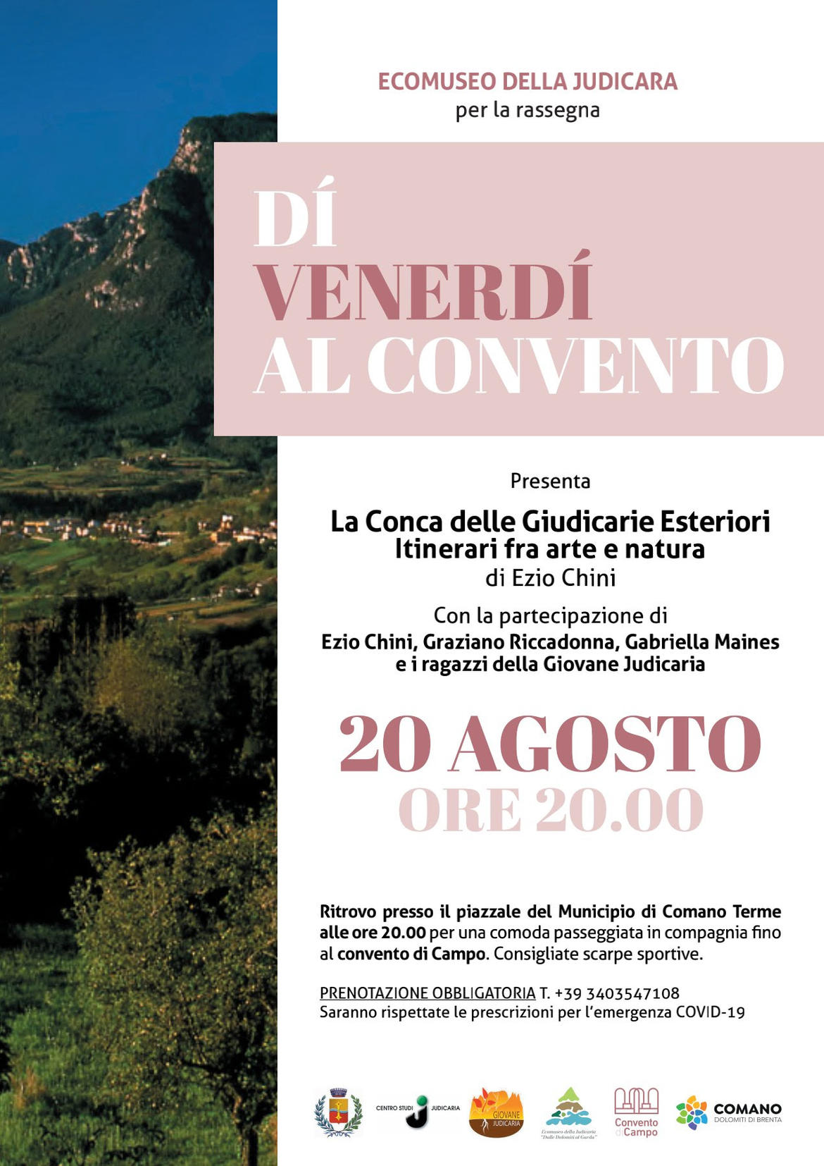 Ritrovo presso il piazzale del Municipio di Comano Terme ad ore 20.00 per una comoda passeggiata in compagnia fino al convento di Campo