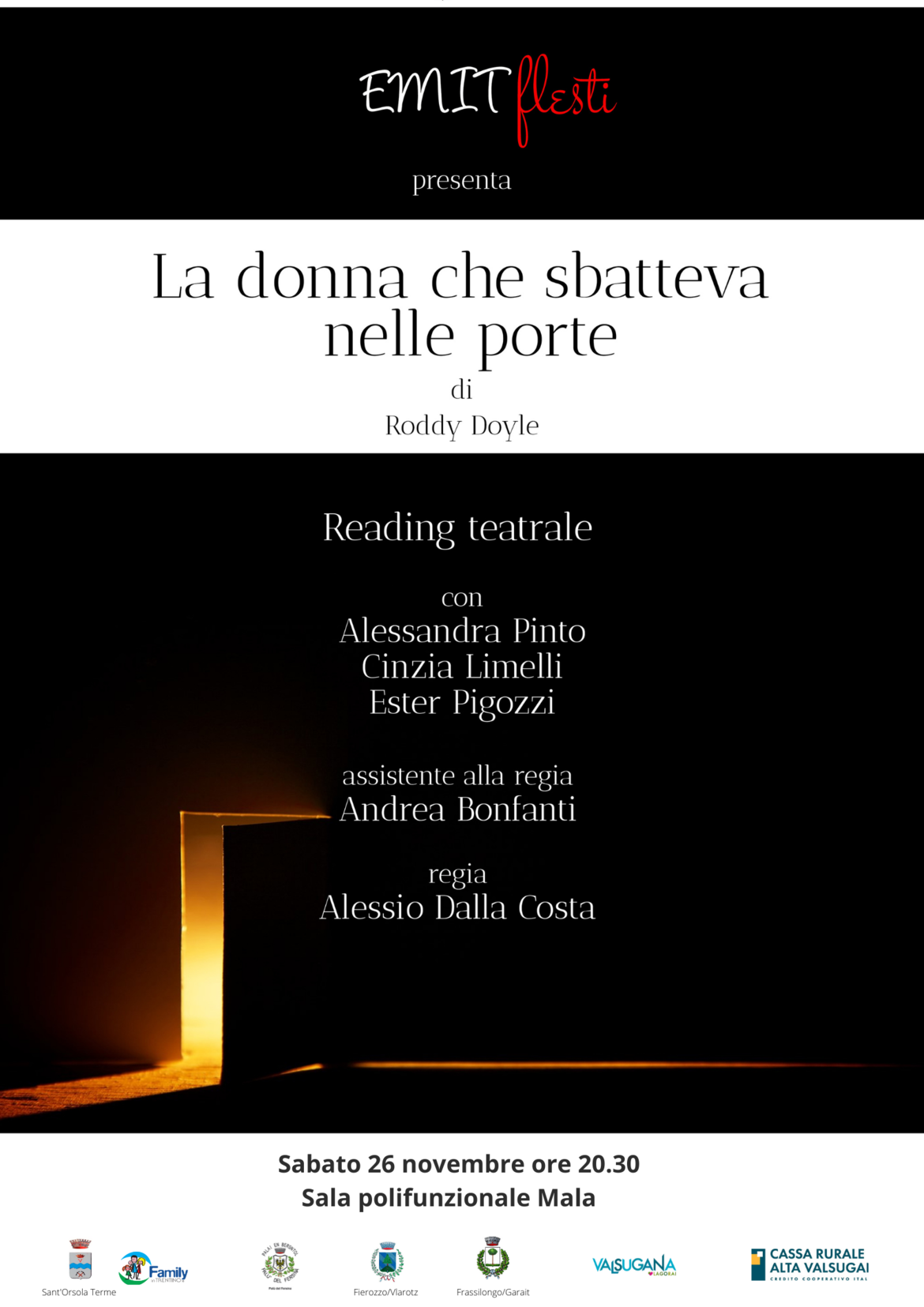 In occasione della giornata internazionale contro la violenza sulle donne, sabato 26 novembre alle ore 20.30 presso la Sala polifunzionale di Mala è in programma "La donna che sbatteva nelle porte": una storia di violenza domestica.
