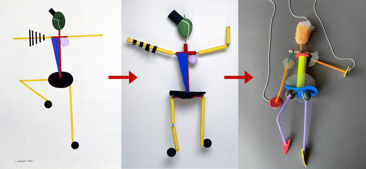 Le creazioni per il teatro dell’artista Luigi Veronesi ispirano la costruzione di una marionetta fatta con materiali di riciclo.