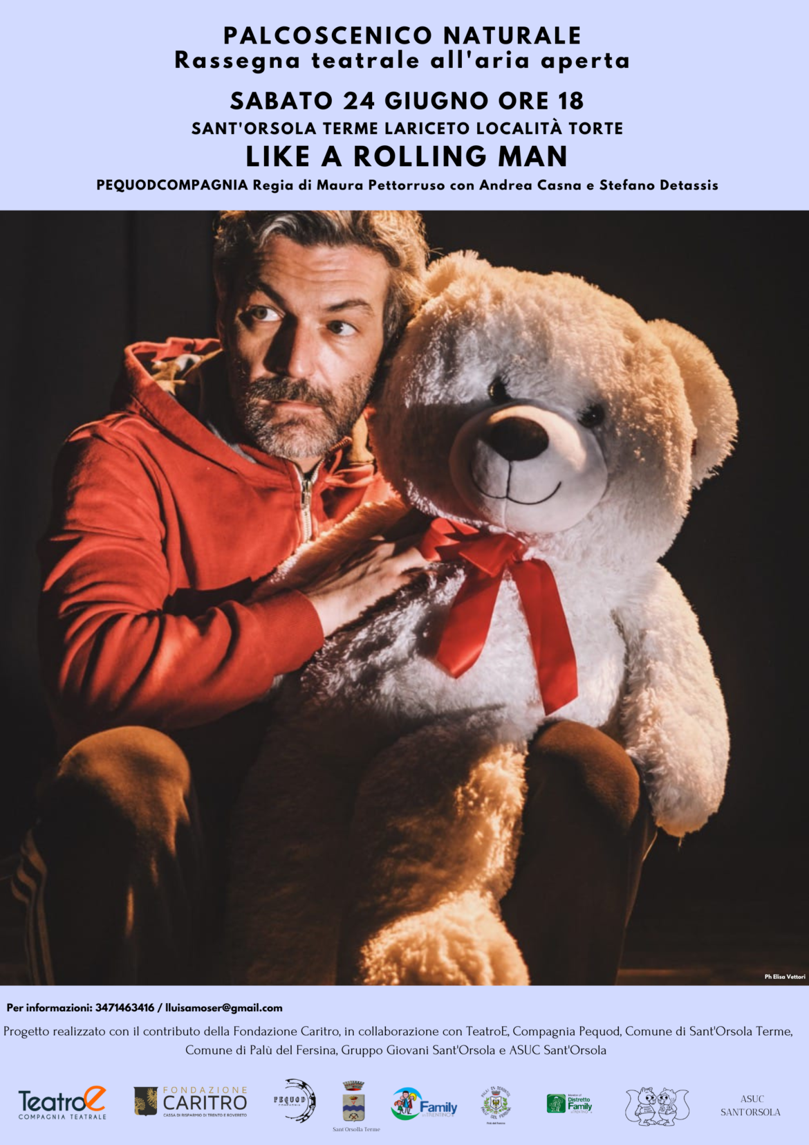" È tardi! È tardi! È tardi!' gridava affannato il Bianconiglio in Alice nel paese delle meraviglie. 'È tardi' è l'urlo inascoltato di un'umanità che non ha più tempo. Lo dice la scienza, lo ripete la Natura, gli fanno eco i movimenti green che in tutto il mondo lanciano appelli e guidano manifestazioni. E il teatro è una perfetta cassa di risonanza per lanciare ancora più lontano questo grido d'aiuto. LIKE A ROLLING MEN è un monologo per accogliere e tradurre in narrazione teatrale queste urgenze. Un uomo attende seduto su una panchina in un parco cittadino. A pochi passi dall'ospedale della sua città dove la compagna ha appena partorito. È sera. I reparti riposano e lui si trova a riflettere su questo bambina che verrà. È giusto diventare padre oggi? E che padre sarà per lui? Che mondo gli consegnerà?